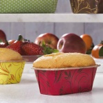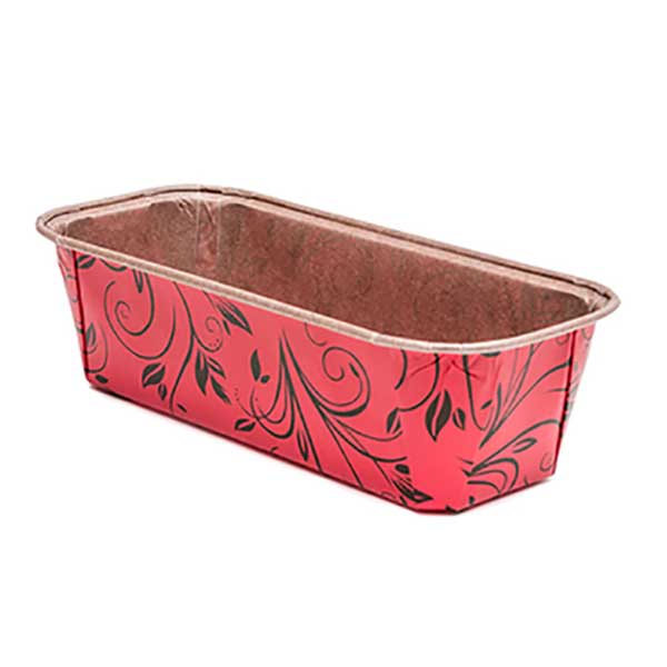 Papirnati pekači z zvitimi robovi v rdeči barvi z vzorcem.