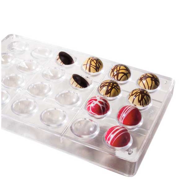 Model iz polikarbonata za izdelavo čokoladnih kroglic.