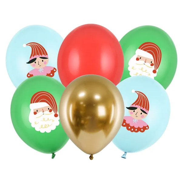 V pakiranju so: 2 balona v Icy Blue barvi s potiskom, 2 v Bright Green barvi s potiskom, 1 v zlati barvi in 1 v Pastel poppy red barvi.