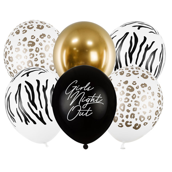 6 lateks balonov mešanih barv in s potiskom '' Girl's night out ''.