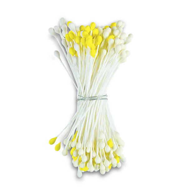 V kompletu je 144 prašnikov v 3 barvah: 48 kom v beli, 48 kom v rumeni in 48 kom v slonokoščeni barvi.