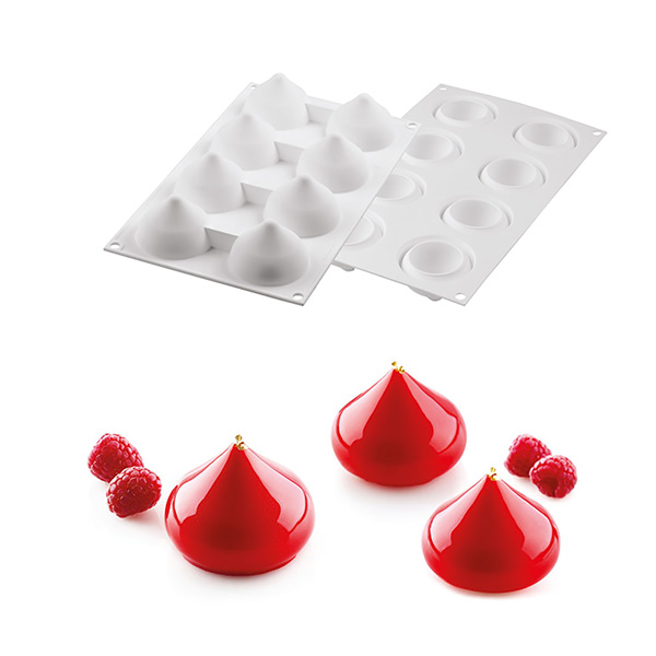 Silikonski model Goutte 55 priznanega proizvajalca Silikomart kapacitete 8 x 55 ml, total 440 ml, dimenzije 54 x 54 mm, višine 41 mm.
