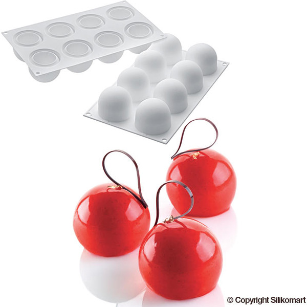 Silikonski model Truffles priznanega proizvajalca Silikomart kapacitete 8 x 120 ml, skupaj 960 ml, dimenzije Ø 62 mm, višine 52 mm.
