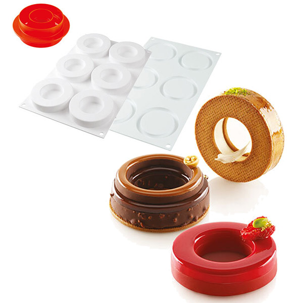 Komplet Ring priznanega proizvajalca Silikomart je sestavljen iz silikonskega modela, ki omogoča izdelavo šestih semifreddo ali pečenih pripravkov s prostornino 65 ml vsak, modela za izdelavo šestih vložkov in okraskov s prostornino po 13 ml in praktičnim rezalnikom za dvojno uporabo, primernim za izdelavo vložkov in podstavkov.