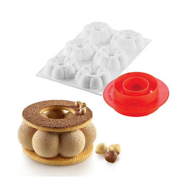 Model Truffle Crown90 priznanega proizvajalca Silikomart z izvirno okroglo sferično krono, iz katere je sestavljen, zasnovan za ustvarjanje prefinjene sladice na krožniku ali monoporcije in pušča prostor za slaščičarsko domišljijo pri okraševanju. Priložen je funkcionalen plastični rezalnik, ki omogoča ustvarjanje originalnih okraskov in podstavkov.