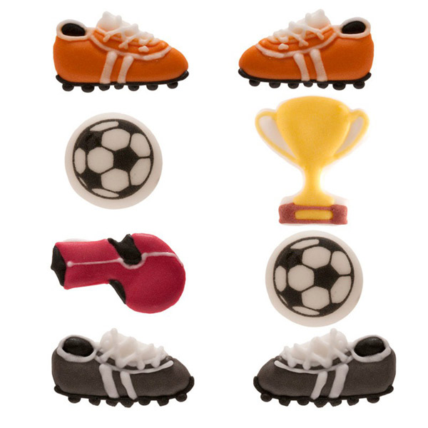V paketu prejmete 8 sladkornih dekoracij nogometne tematike.