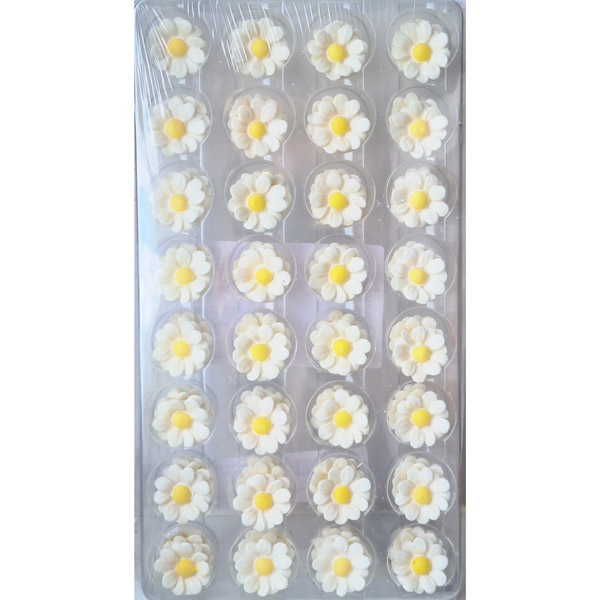 Komplet malih belih sladkornih marjetic za okrasitev torte.