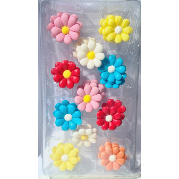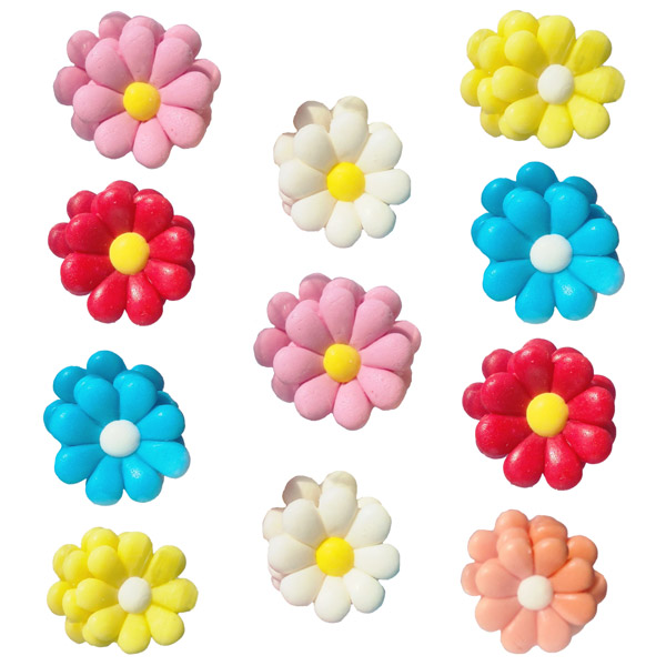Komplet velikih pisanih sladkornih marjetic za okrasitev torte.