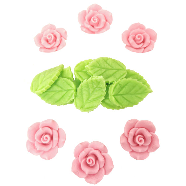 Komplet roza sladkornih vrtnic z listki za okrasitev vaše torte.