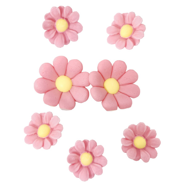 Komplet roza sladkornih marjetic za okrasitev vaše torte.