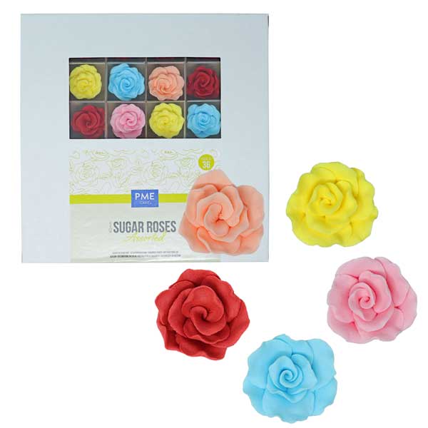 Set vključuje 36 sladkornih vrtnic, pri čemer vsaka vrtnica meri 40 mm.