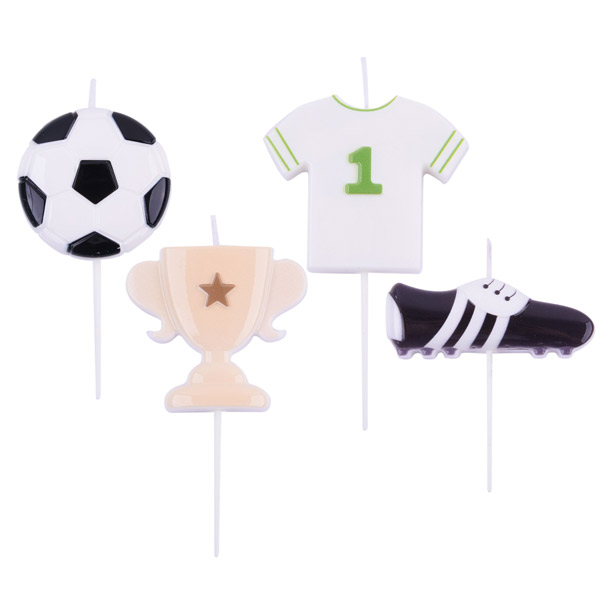 Paket vključuje 4 sveče: žoga, kopačka, dres in pokal.