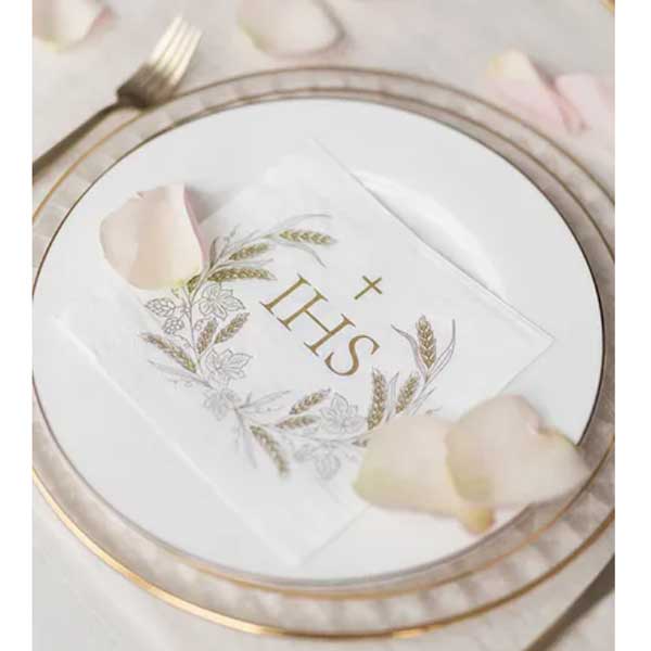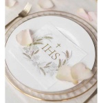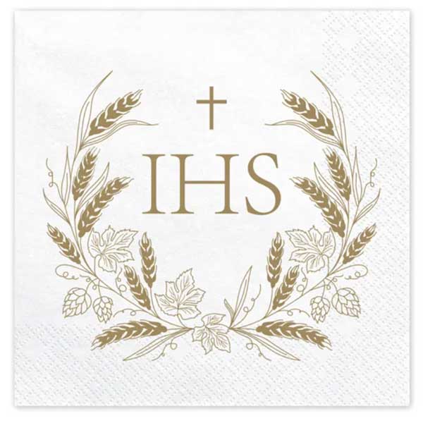 Papirnate serviete v beli barvi z zlatim potiskom.