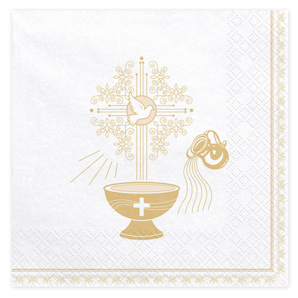 Dvoslojne papirnate serviete v beli barvi z zlatim potiskom.
