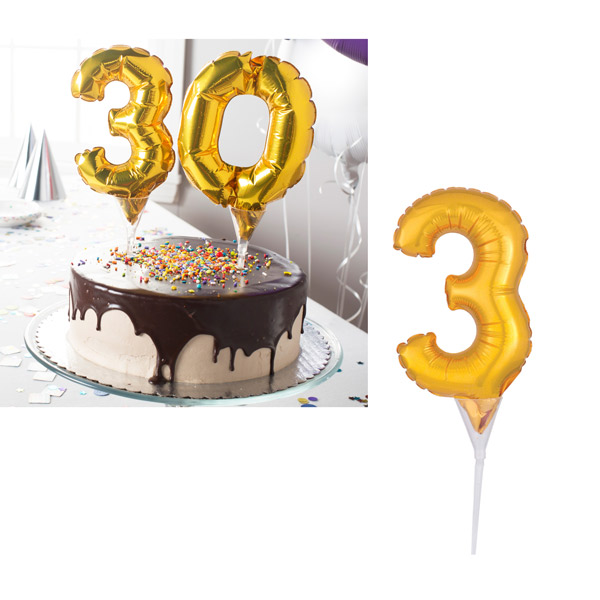 Balon tortni topper v zlati barvi, število 3.