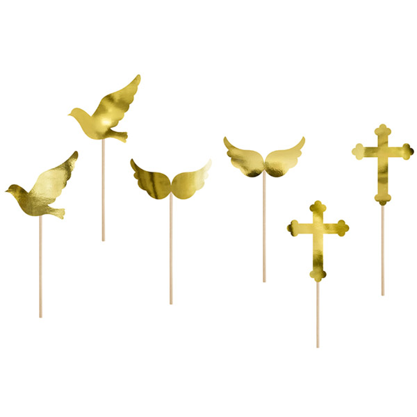 Cupcake topperji za obhajilo v zlati barvi.
