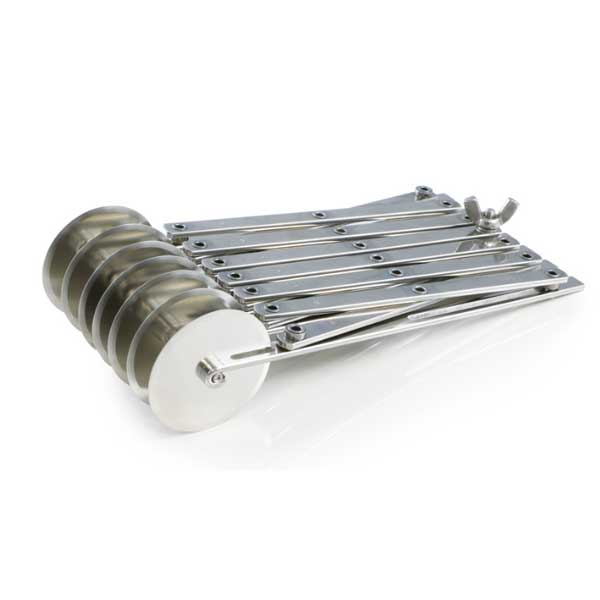 Razširljiv rezalnik iz nerjavečega jekla, ki omogoča razrez testa na trakove.
