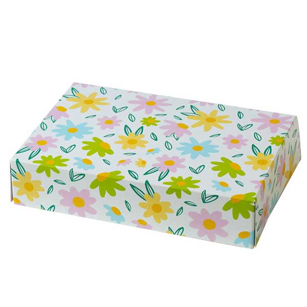 Samosestavljiva škatla za kolačke iz trpežnega, živilsko varnega kartona.