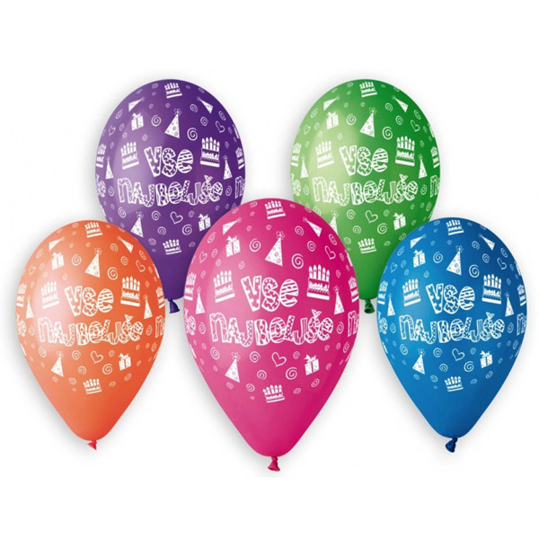 V pakiranju je 6 lateks balonov različnih barv s tiskom Vse najboljše.