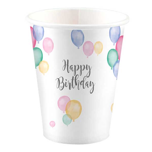 Kozarci Happy Birthday 8 kos, 250 ml